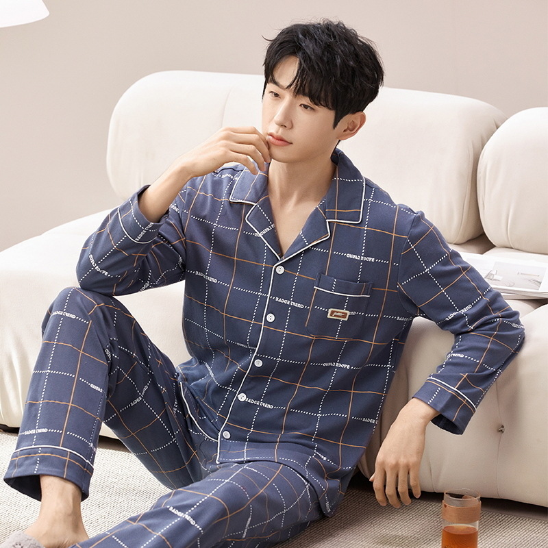 純綿の襟付きパジャマ男性2024年の新型の大きいサイズの長袖の青年秋冬の家の服は外でスーツを着ることができます。