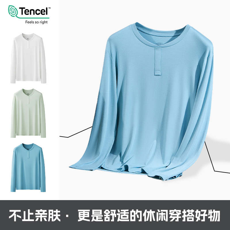 60本の両面モーデール春秋男性長袖tシャツの薄い純色の上着の中に秋衣の丸襟の家の服を掛けます。