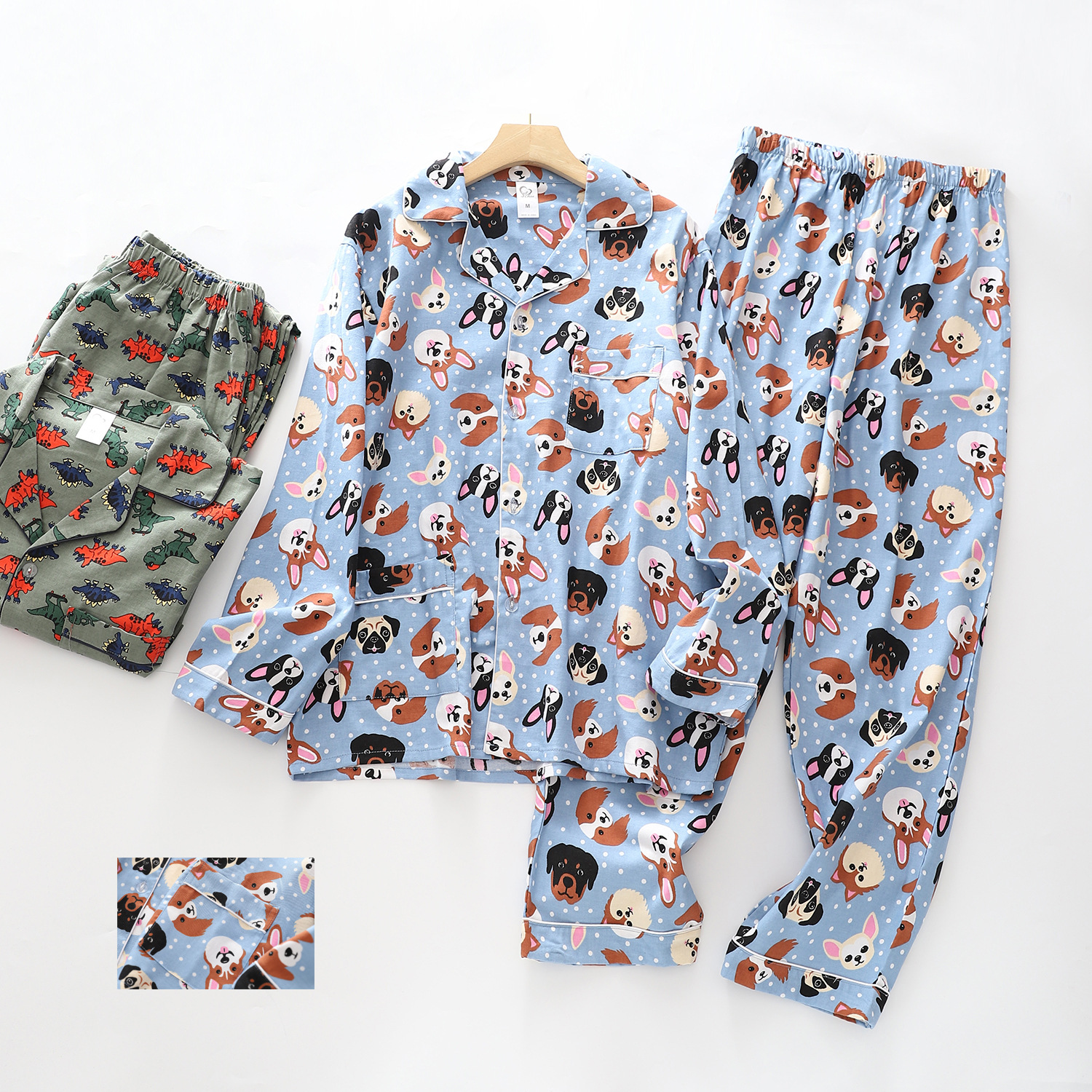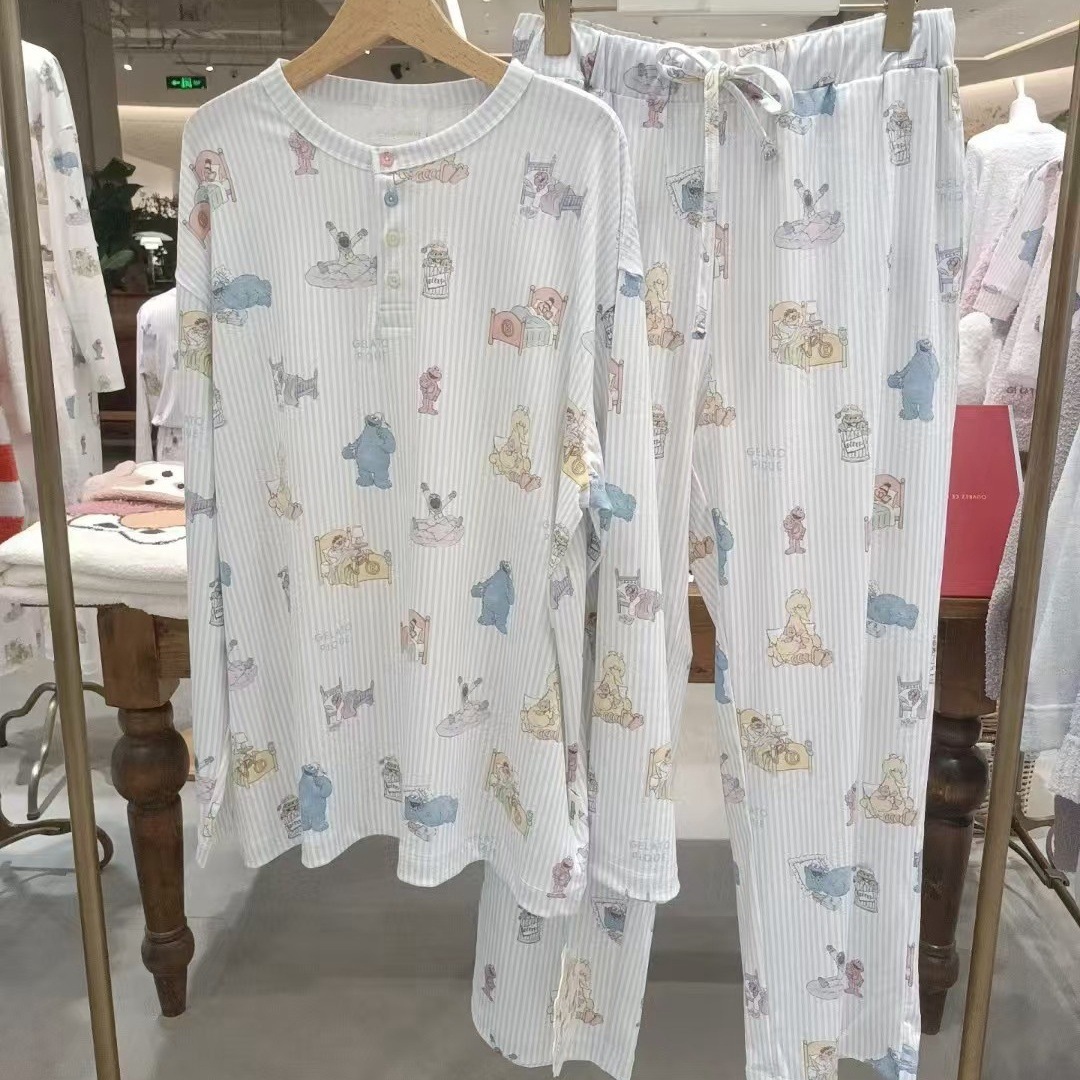 GPソフト綿アイスクリームゴマ街かわいいアニメプリント家服男性丸首長袖ズボン男性パジャマ