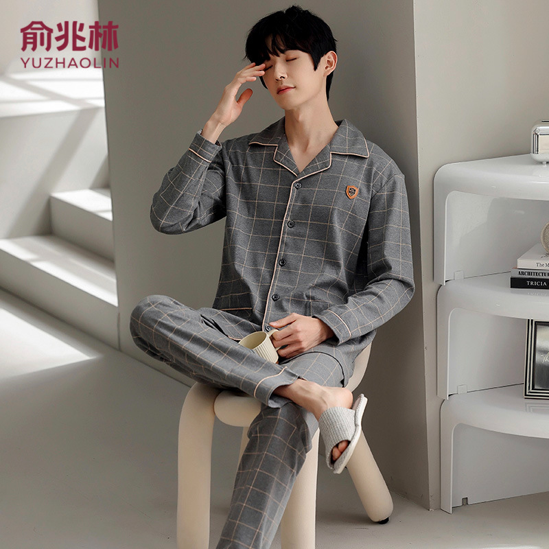 Yu Zhaolin メンズパジャマ春秋メンズコットン長袖ズボンホームウェアセット