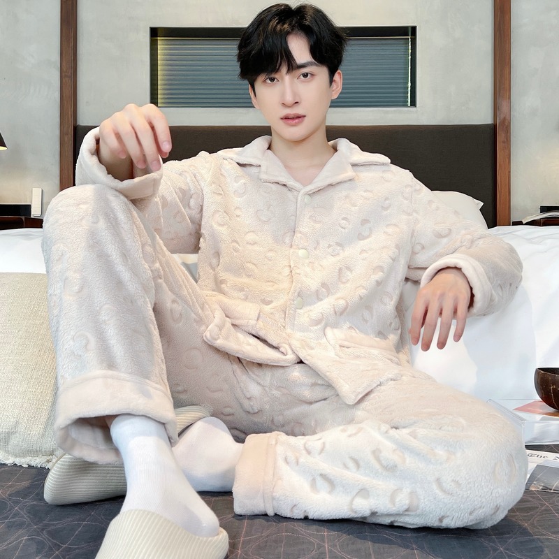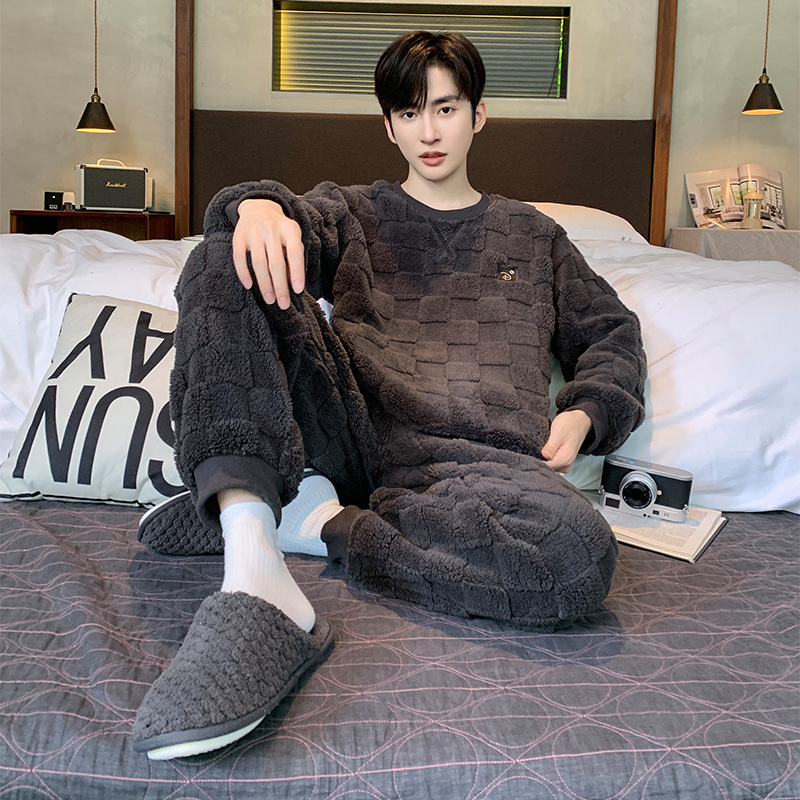 2024年の新型コーラルベルベット男性パジャマ秋冬のベルベットは保温男性の家庭服セット卸売りを厚くした