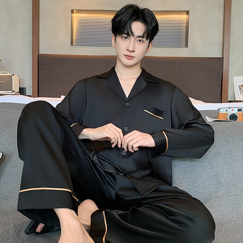男性パジャマ春秋タイプ夏青少年カーディガン薄手長袖長ズボン男性式夏ルームウェアセット