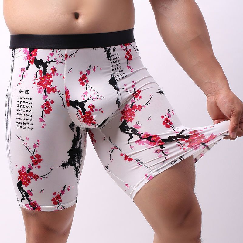 クロスボーダー夏の男性下着アイスシルク大きいサイズつば広トレンディなプリント大型高弾性ボクサーパンツ卸売