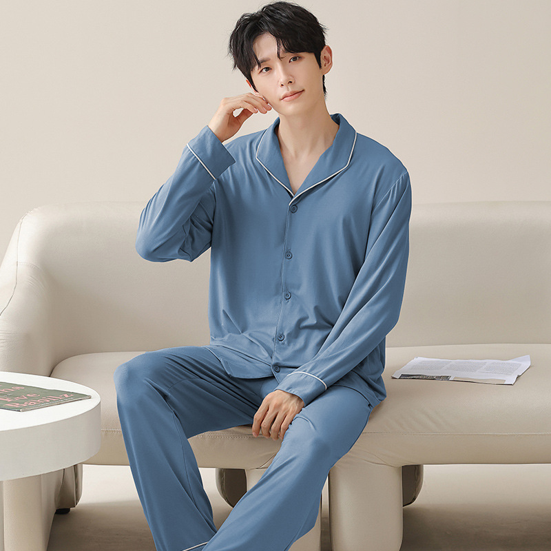 【超柔らかい】春のモーダルコットンパジャマ男性長袖の薄いパジャマ夏の男性の部屋の服の新型