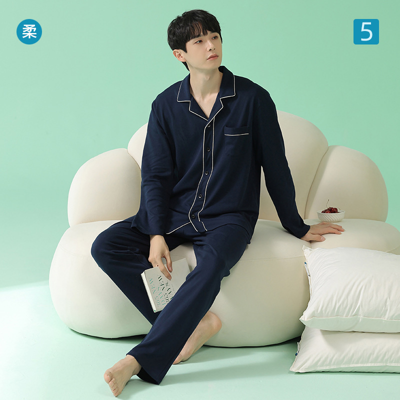 2023新型男性パジャマ春秋長袖長ズボンカーディガンパジャマ薄い綿質春夏ルームウェアセット