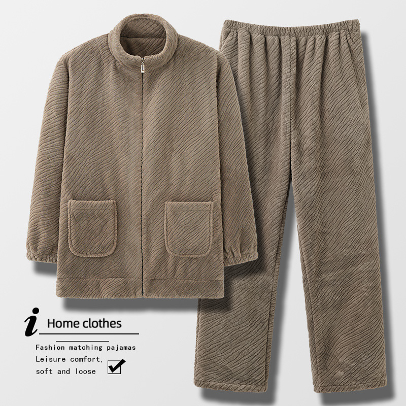 サンゴのパジャマ男性秋冬には、厚いサイズの保温フランネルのジッパーを着て家の服を着ることができます