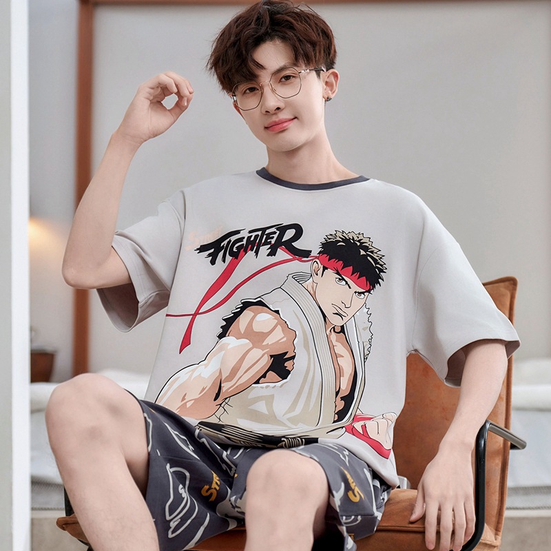 2025新型男性パジャマ夏純綿薄半袖半ズボン大サイズ男性青少年家庭服セット