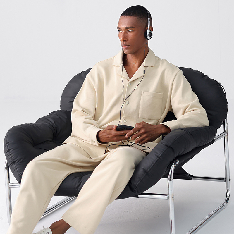 2025新型春秋タイプの男性パジャマ雲綿糸長袖襟付き男性家庭服セット夏の外着