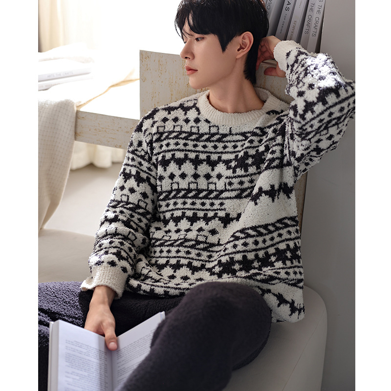 [ソフトハーフベルベット]秋冬パジャマメンズプリント厚手新スタイルゆったりウェアラブルホーム服セット