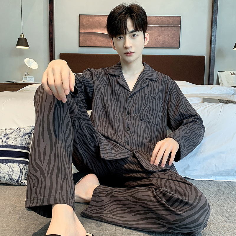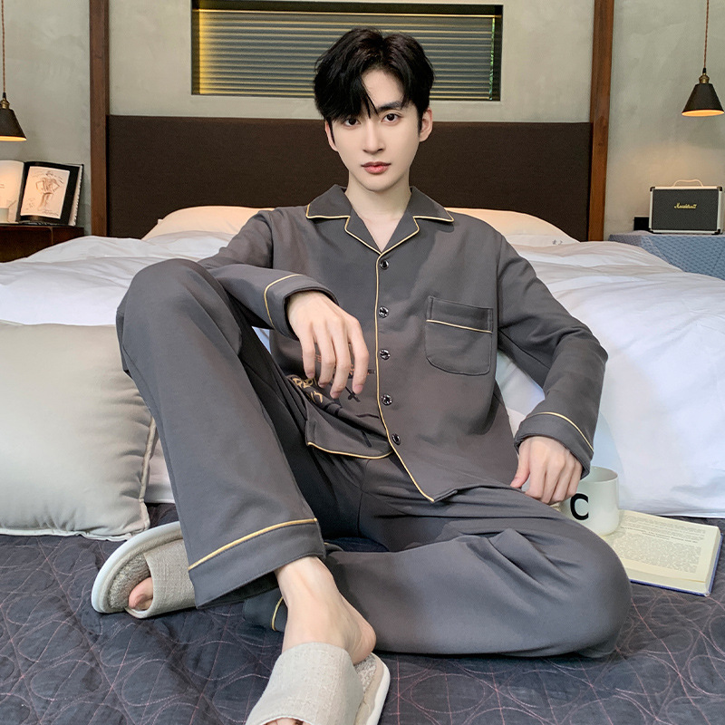 2025新型パジャマ男性長袖純綿春秋四季通用青少年男子純綿家庭服セット
