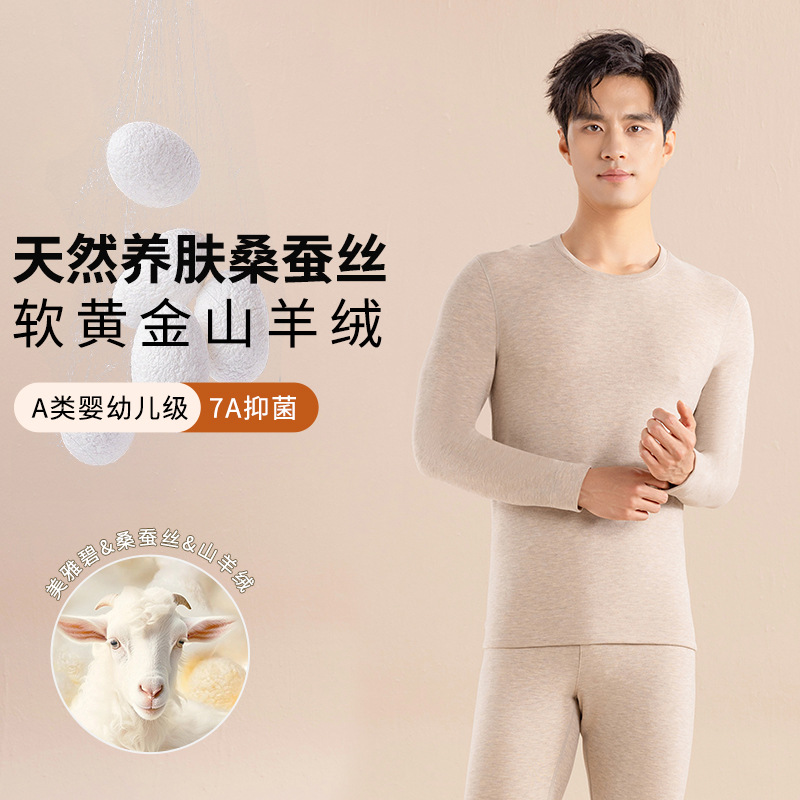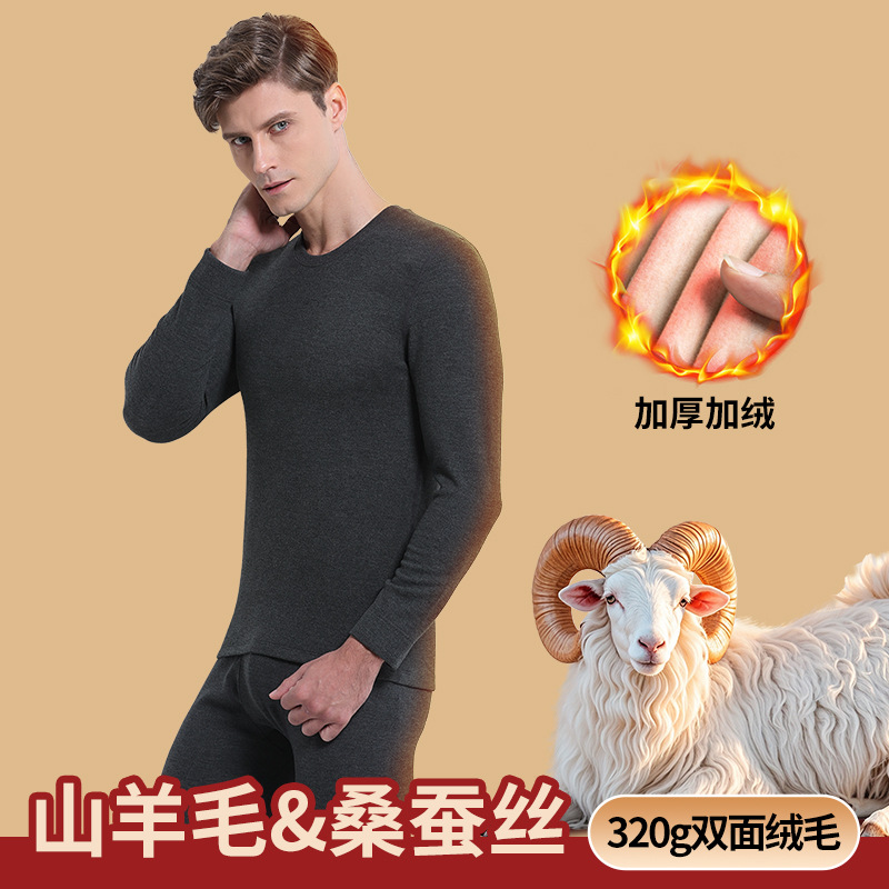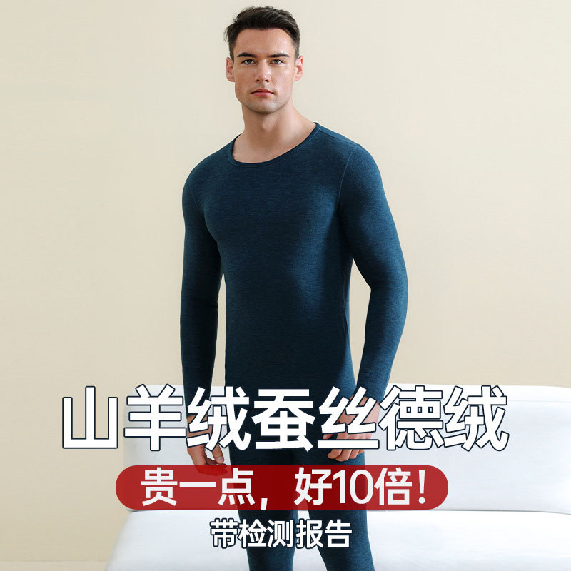シルクカシミヤ徳無痕保温下着男無痕上着とベルベットの厚い秋衣秋ズボンセット