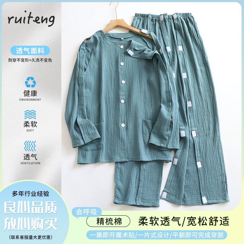 脱着しやすい双ファスナー理学療法服男性大サイズ寝たきり老人骨折術後化学療法看護服鍼灸リハビリ服