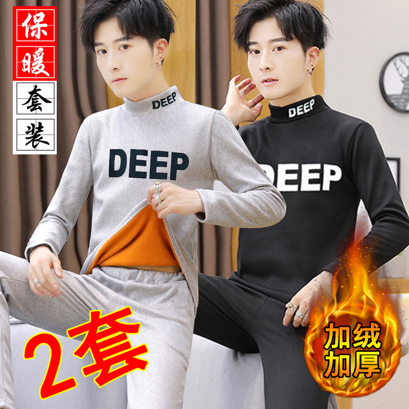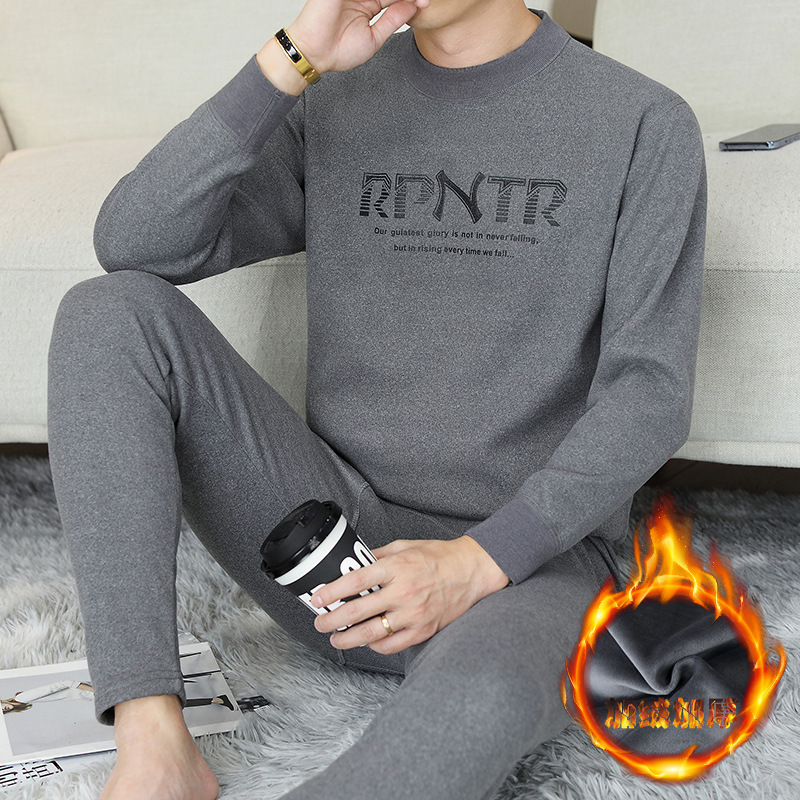 代装保温下着男性はベルベットとベルベットのセットを厚くして冬の秋の服の防寒秋の服の秋の男のズボンを着ます