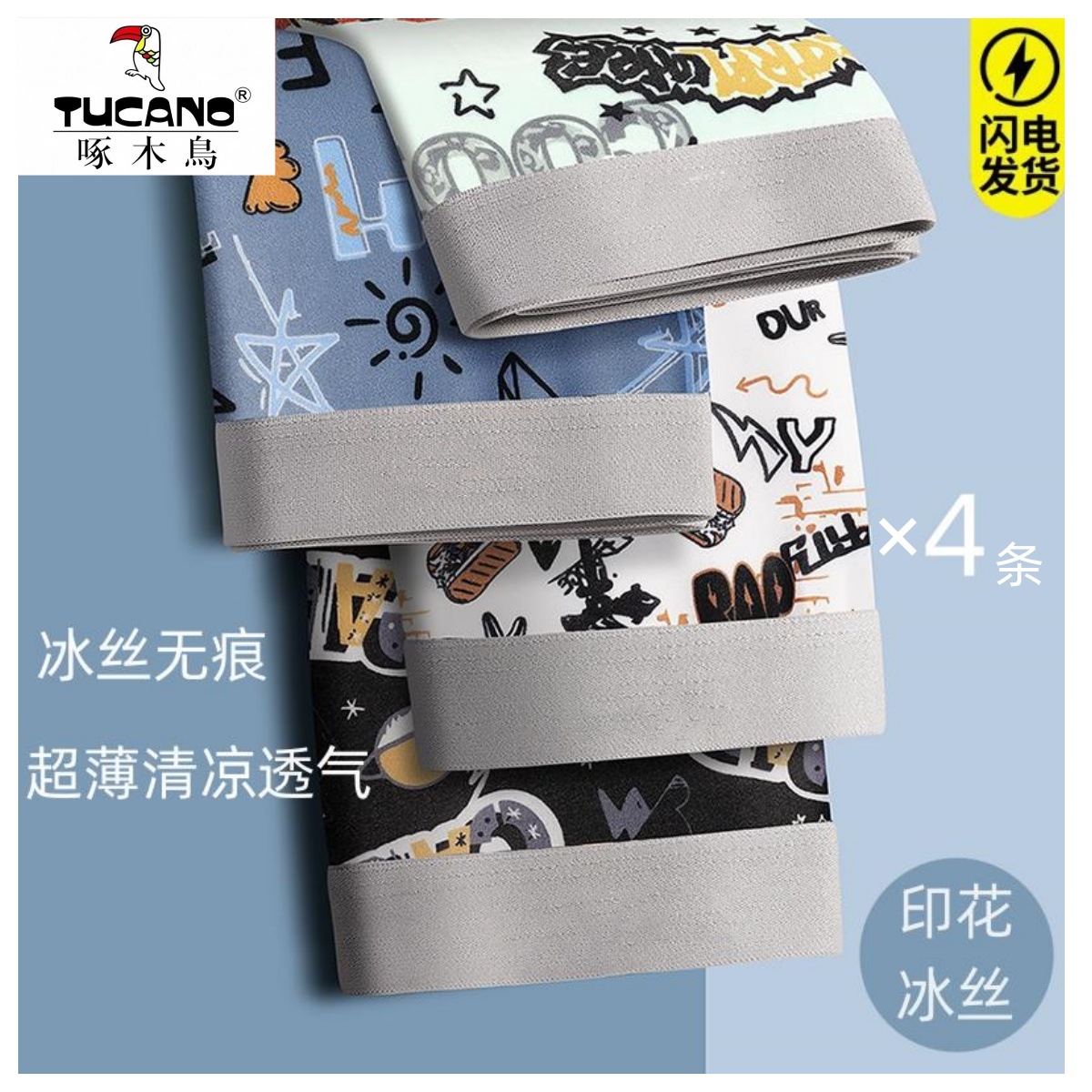 ウッドペッカー メンズ下着 男性用アイスシルク 夏用シームレス通気性ボクサーパンツ 抗菌パンツ 四角形通気性抗菌