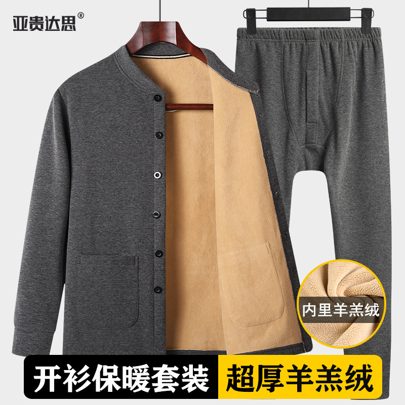 秋冬の中高年男性保温下着セット羊の小毛とベルベットの厚い底の秋の服の秋のズボンのお父さんの服