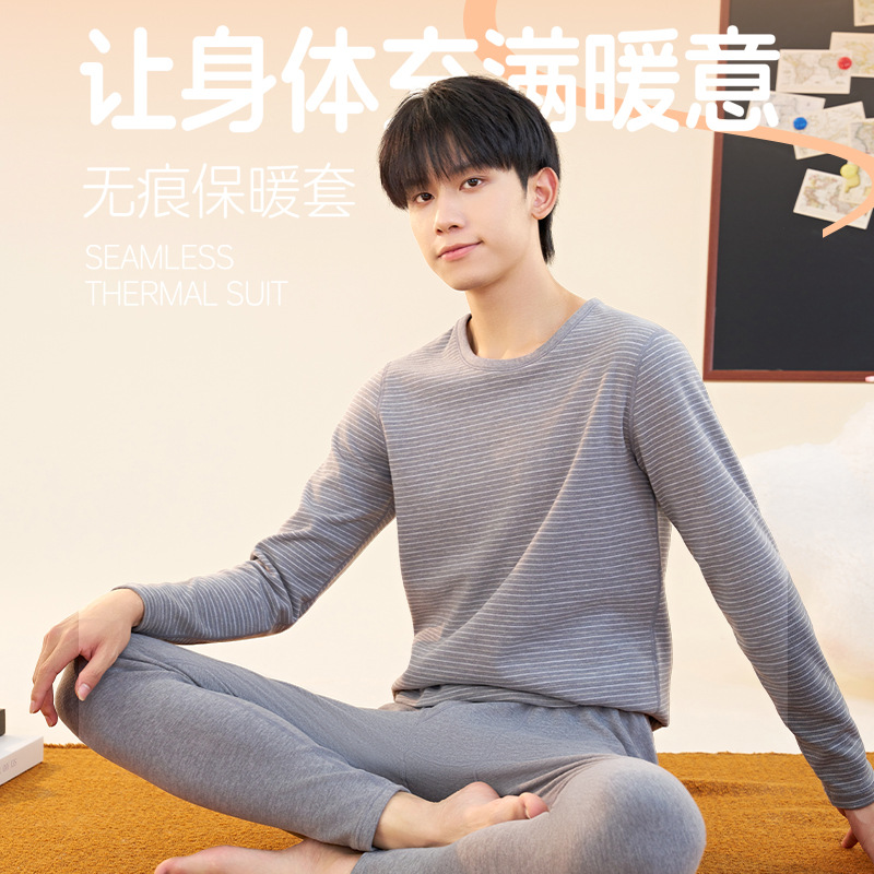冬のウールシルク保温下着秋衣秋ズボンセット青少年中学校高校生発熱保温服