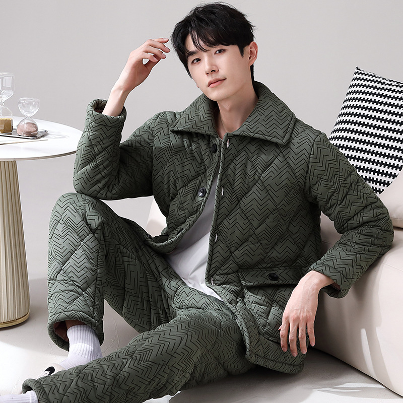 2023年新パジャマ男性秋冬にベルベットを厚くして綿の上着を挟んだ男性の家庭服セット冬服