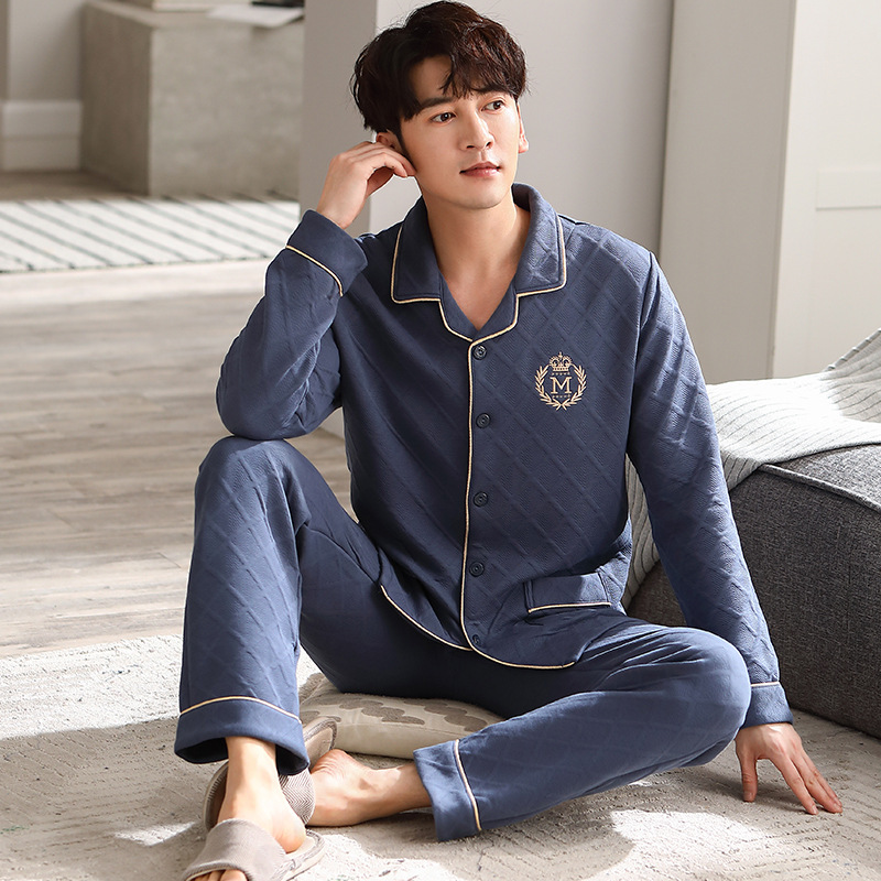 メンズパジャマ 春秋用 純綿中綿入り エアーコットン 秋冬用 大きいサイズ ホームウェアセット 冬用 厚手 保温