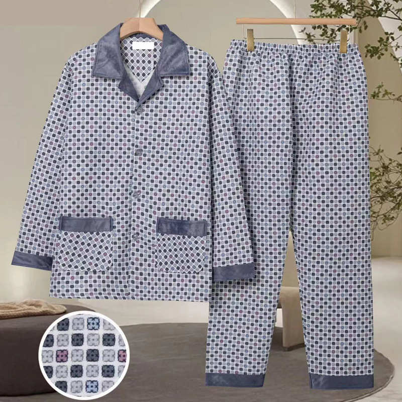 純綿パジャマ男性春秋タイプ秋長袖カジュアル男性家庭服秋中高年お父さん冬プラスサイズ