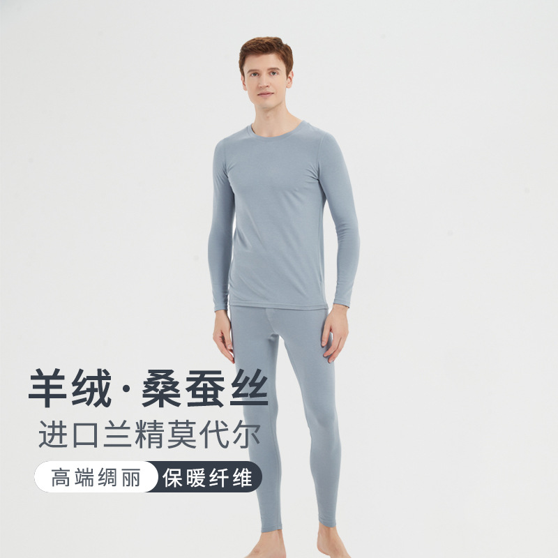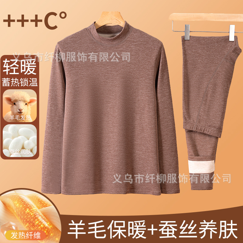 ウールシルク男女中襟秋衣秋ズボン中老半高襟保温下着セット