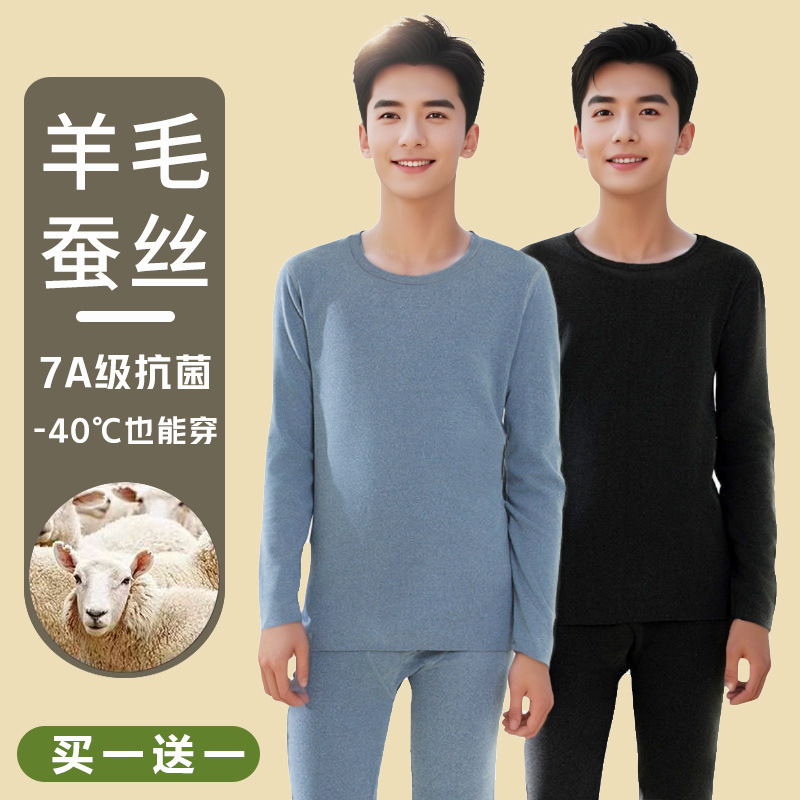 青少年ウールシルク徳絨毛秋衣秋ズボンセット男子大童中学校学生保温下着冬
