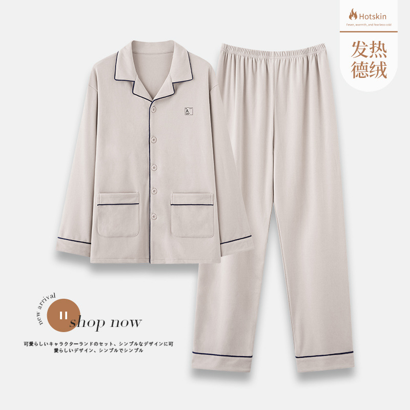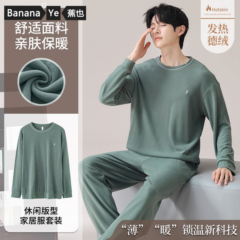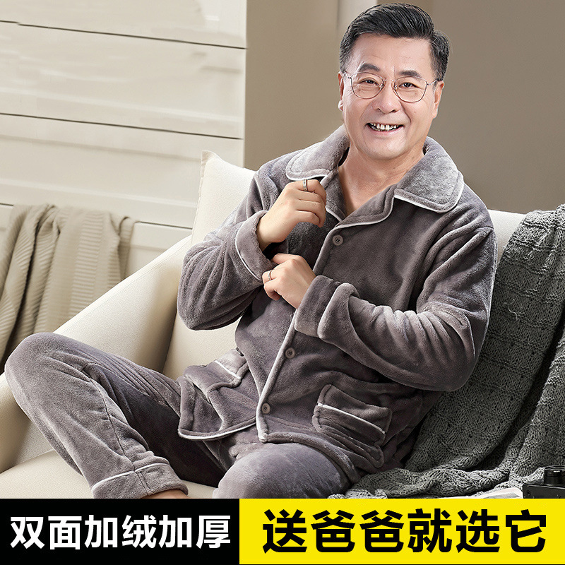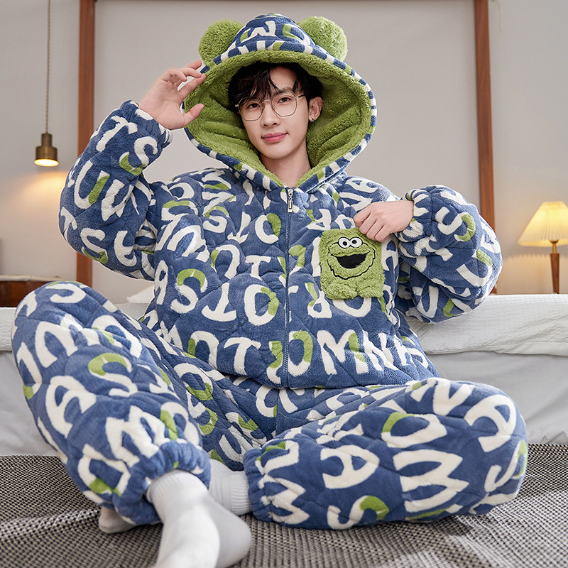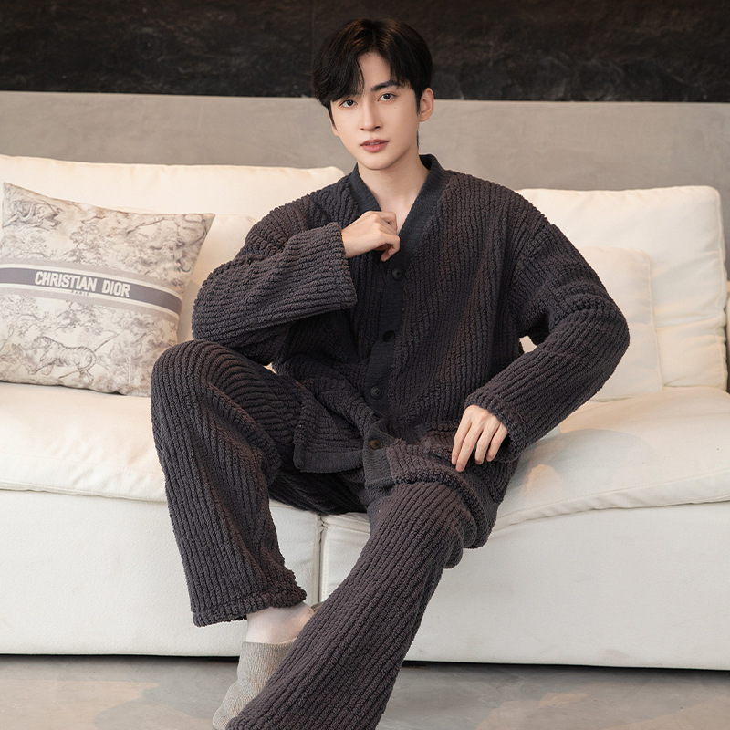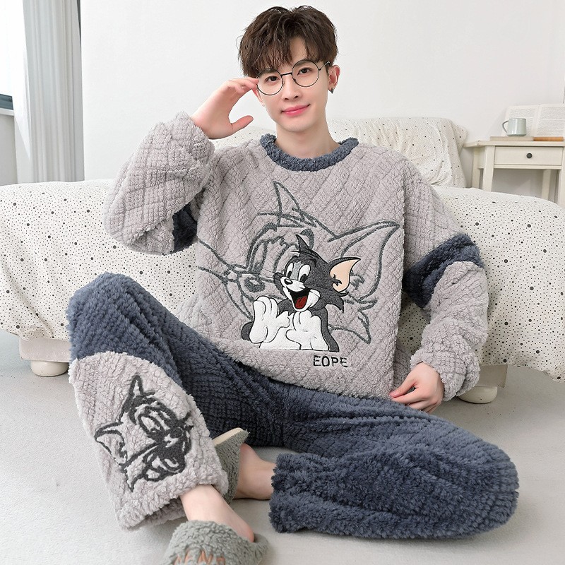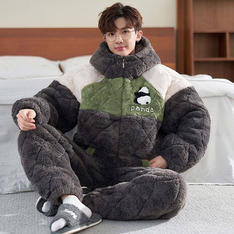 秋冬のパジャマの男性は厚いベルベットを着て保温します。