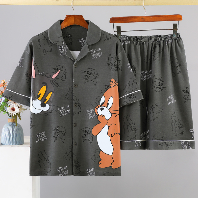 夏半袖パジャマメンズカーディガン漫画ティーンエイジャープラスサイズショーツメンズパジャマホームウェアセット