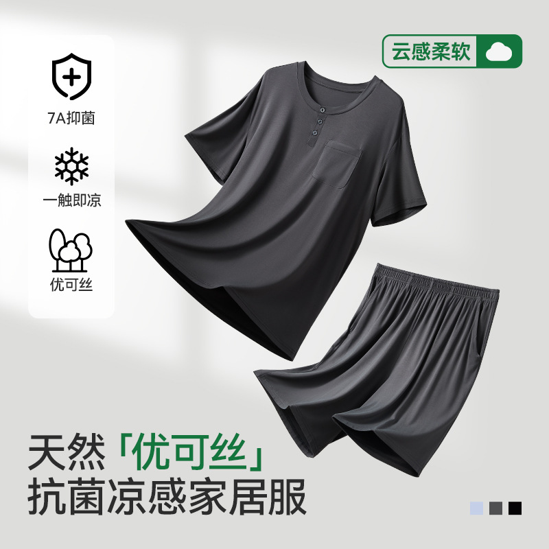 エコシルク半袖メンズパジャマ夏メンズ大きいサイズボーイズ夏抗菌ウェアラブルティーンエイジャーホーム服
