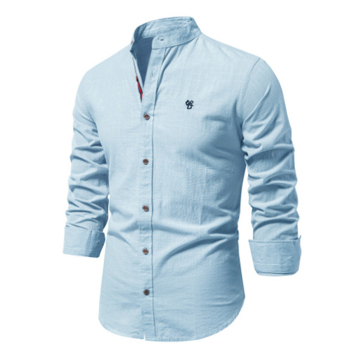 欧米のクロスボーダー男性単層純色通気立襟半袖シャツ2025年男性ファッションシンプル純色シャツ