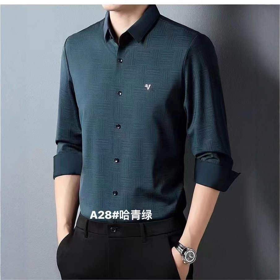 男性長袖七分シャツ男性純色修身ビジネス作業服無料シャツ青年上着メーカー供給