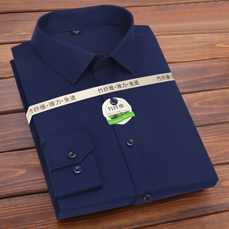 竹繊維韓国版修身長袖シャツ男性ストライプ弾力無熱シャツ青年快適ビジネスレジャー