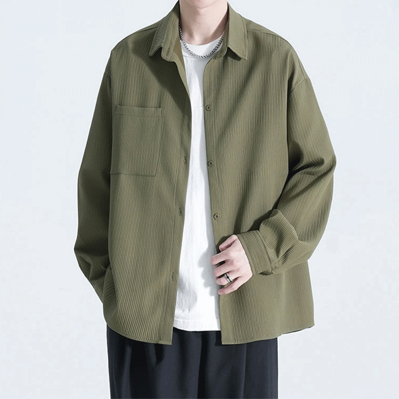 クロスボーダー2025新型ファッション百合男性コートボタンカーディガン修身襟付きスポーツカジュアルシャツ男