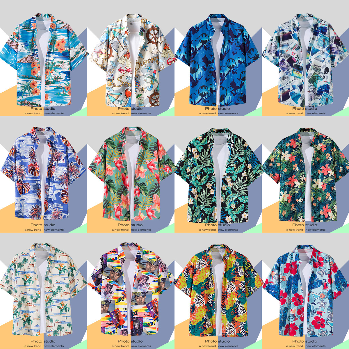 レトロな香港風の花のシャツの男性の半袖の夏のゆったりとしたカジュアルなシャツのファッションのinsファッションのブランドの日系のごろつきのかっこいいコート