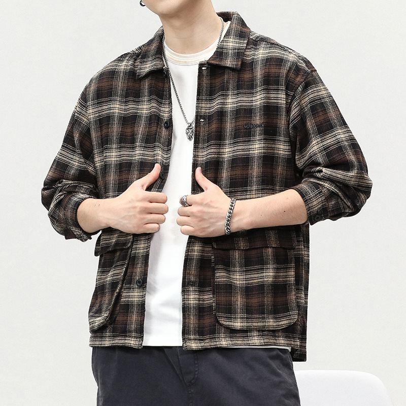新長袖シャツ男ゆるい秋冬新日系長袖百合格子男性シャツ男外着上着