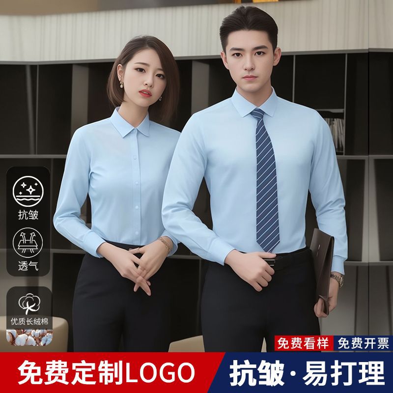 高級プロフェッショナルビジネスフォーマルウェアメンズツイルコットンシャツレディース長袖ブルーシャツホワイト半袖作業服カスタマイズ