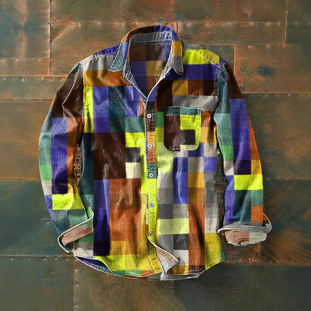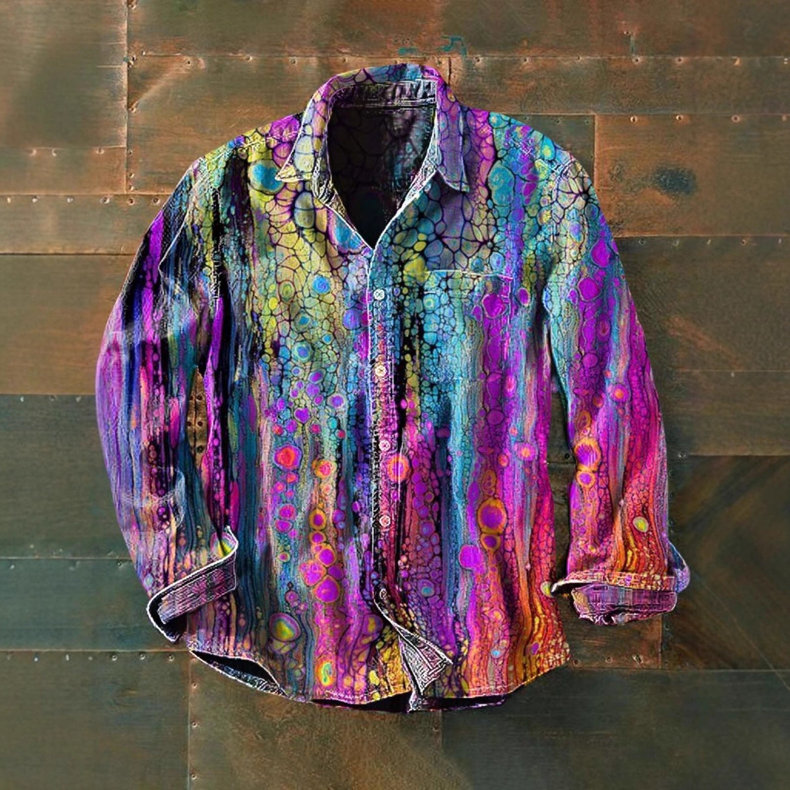 2025年新作アマゾンレトロリゾート風売れ筋配色プリントトレンド長袖ボタン付きトップスシャツメンズ