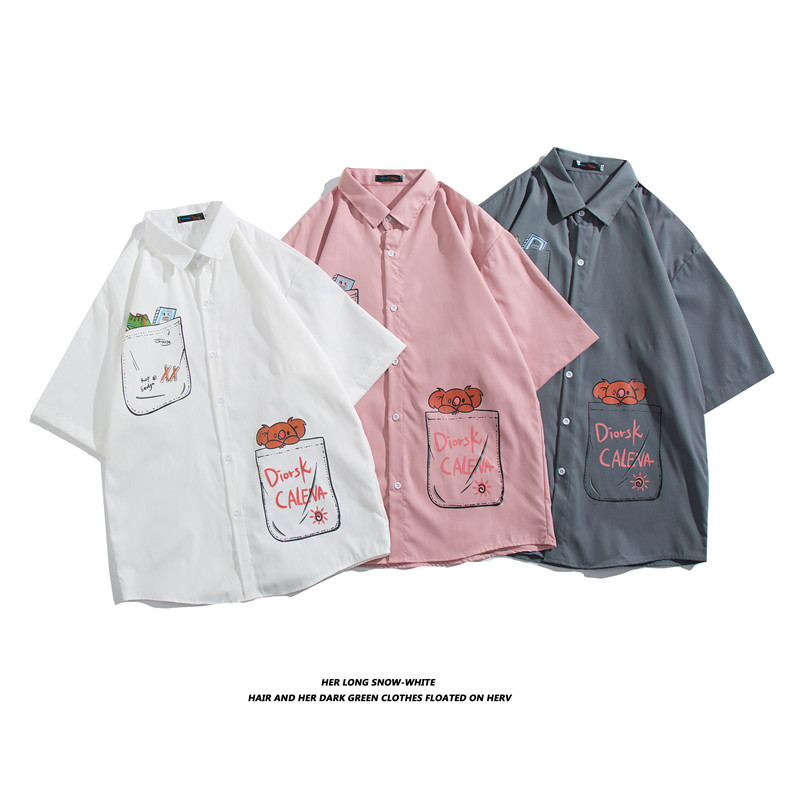 半袖のシャツの男性の学院の風の漫画の上着の韓国版の潮流の百合ins香港風の日本のゆったりしている夏のシャツ