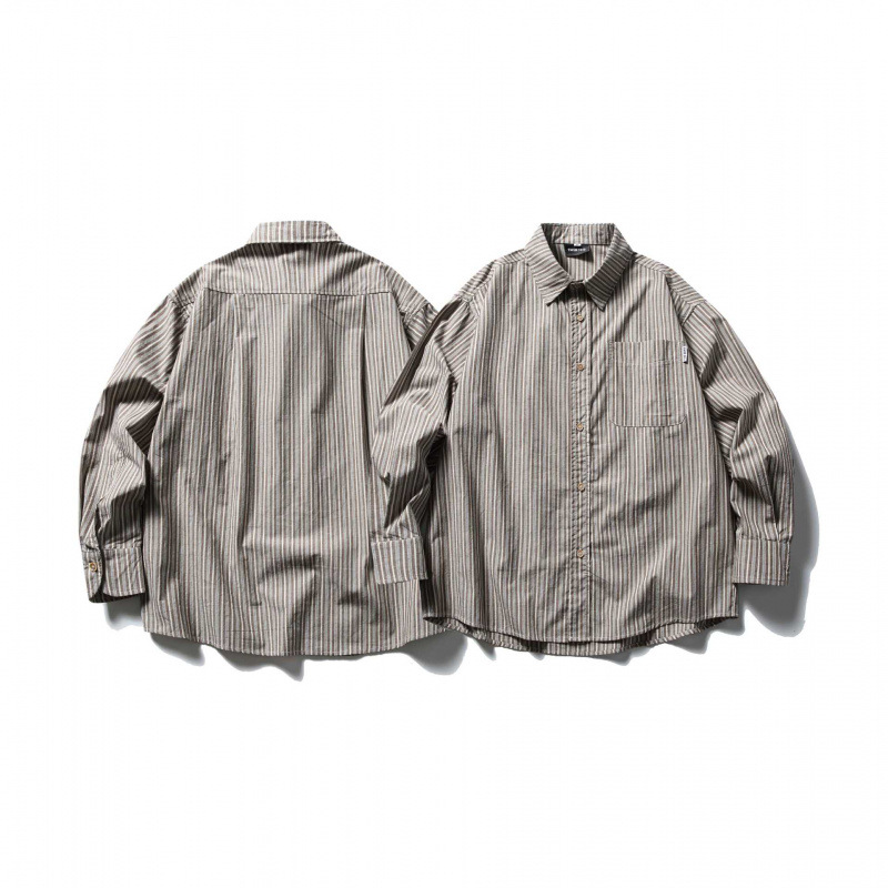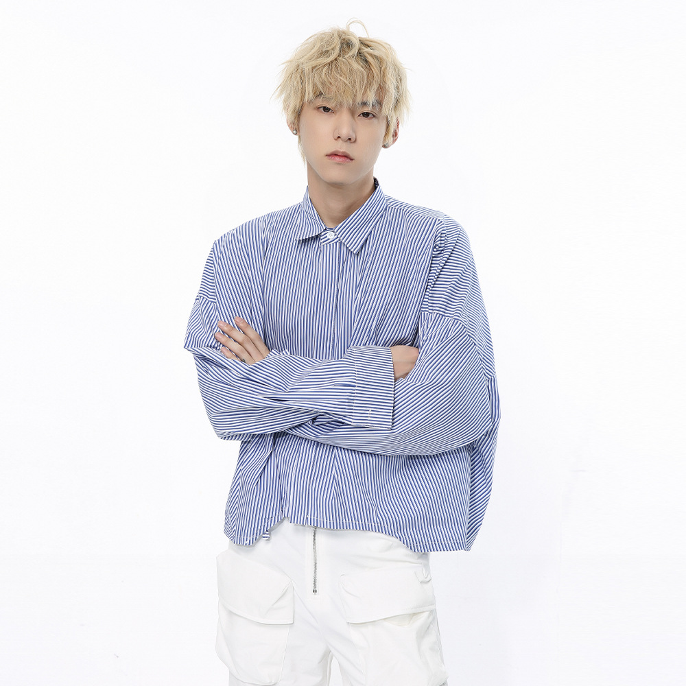 日本系ストライプシャツ男bf風長袖シャツ香港風メンズ韓国版ファッション秋カジュアルコートカップル服