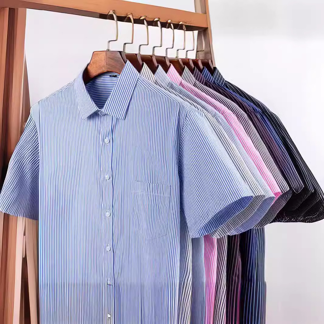 2024半袖シャツ男子夏の薄いストライプシャツカジュアルなシャツ