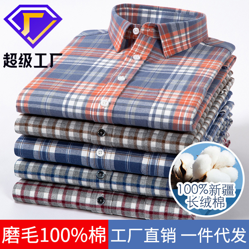 大きいサイズのメンズ服、欧米風チェック柄メンズカジュアルシャツ、起毛長袖シャツ、トレンド