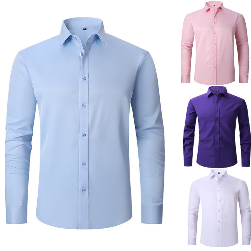 クロスボーダー非弾性シャツメンズノンアイロン抗シワメンズビジネスソリッドカラーシャツアマゾン紳士服工場卸売
