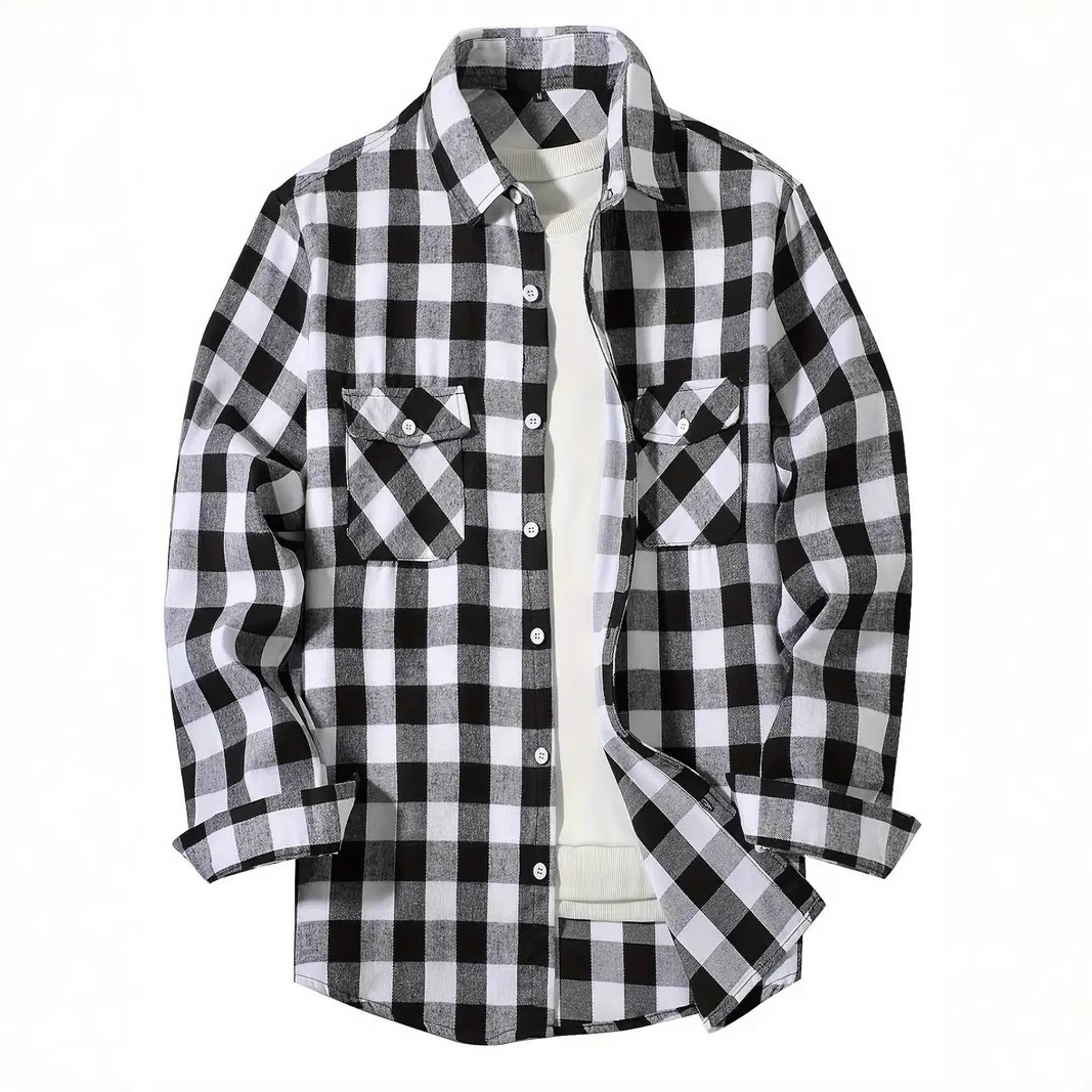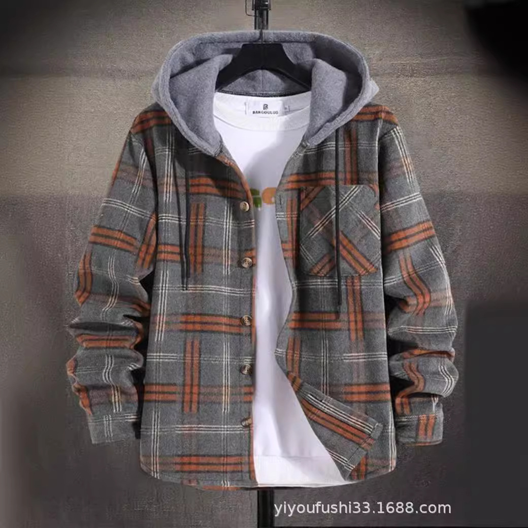 格子のシャツの男性の長袖の韓国版のゆったりしたファッションの格好が良いです。