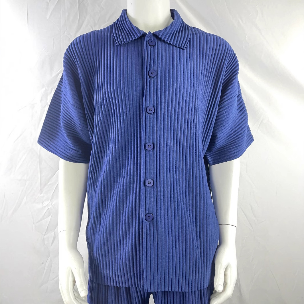 三宅風シワ半袖シャツメンズ上着半袖夏薄いカジュアルコートJJ122