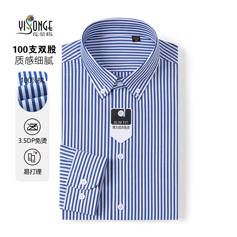 厳選された 100 カウント DP ノーアイロン ピュアコットン ビジネス シャツ メンズ ボタンカラー プロ フォーマル 防シワ ストライプ シャツ