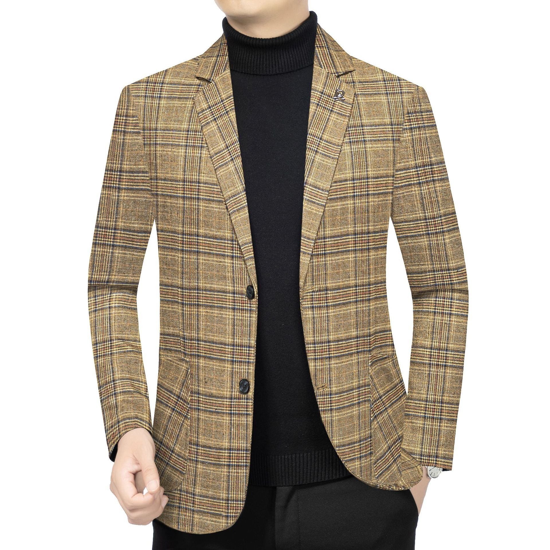 チェック柄カジュアルスーツ メンズ リーダー風フォーマル ビジネス 高級ジャケット メンズファッション 春秋 シングルスーツ 中年男性 ゆったり