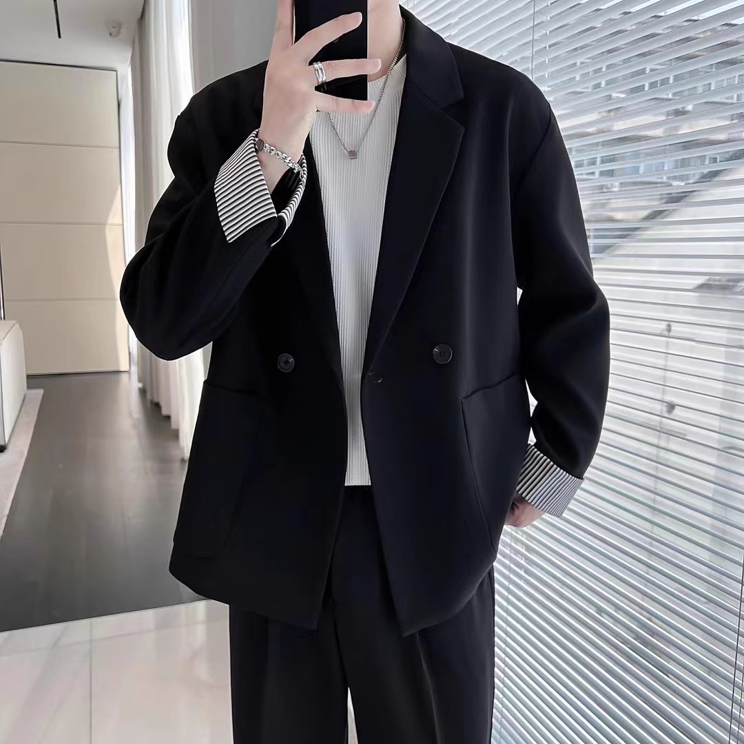軽熟カジュアルスーツセットダブルボタン2024新型秋冬高級感通勤シンプルスーツ男