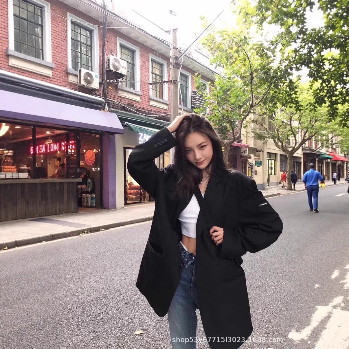 B家バッジロゴデザインのオーバーサイズスーツの高バージョンは、トレンディでクール、ストレートでハンサム、男性と女性に同じスタイルです。