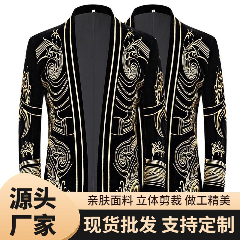 2025 春と秋の新メンズユーススーツ刺繍ローズジャカードスリムフィットカラーハンサムプラス脂肪拡大スーツ