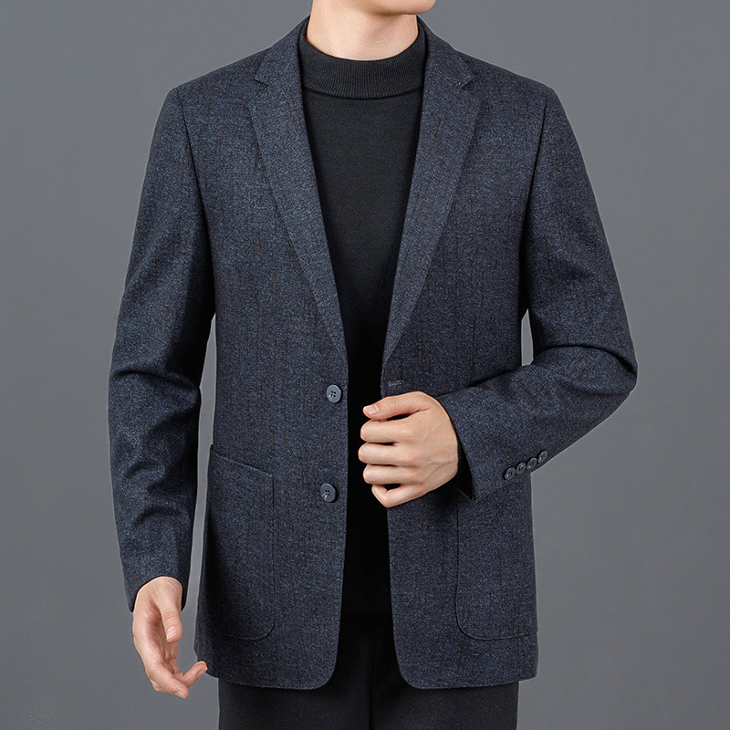 2023年新型男性スーツ春秋冬高級カジュアルスーツ中年上着厚手保温コート男性服