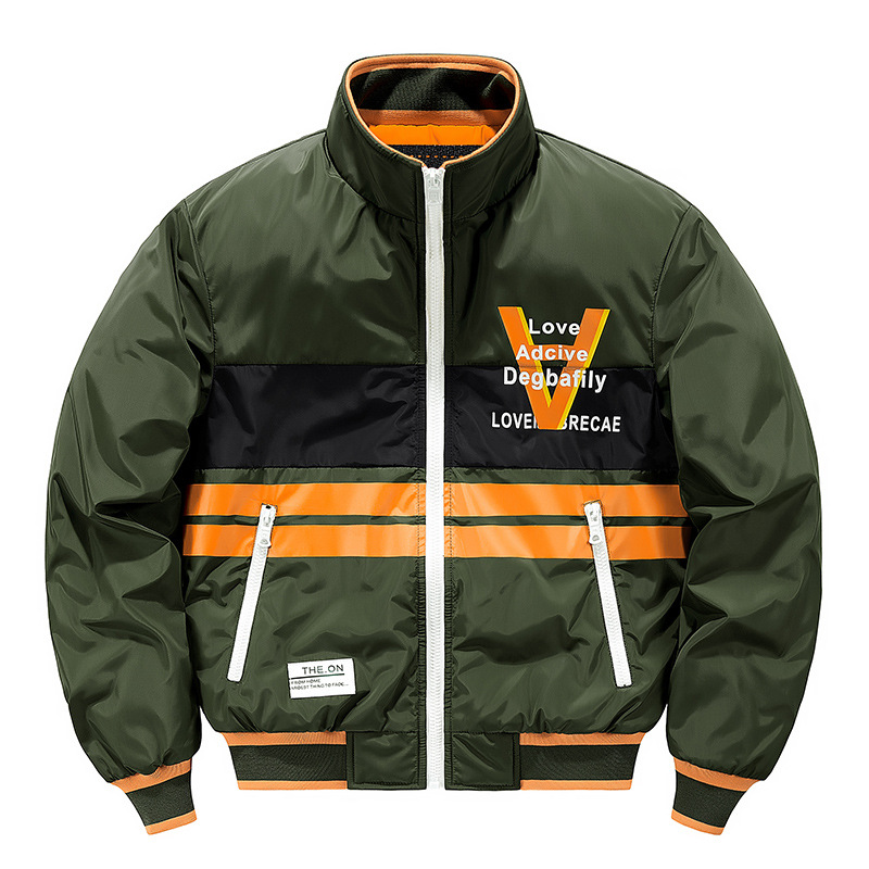 メンズクロスボーダー文字ストライプジャケット男性飛行服男性レジャースポーツコートグラム野球スタンドカラー